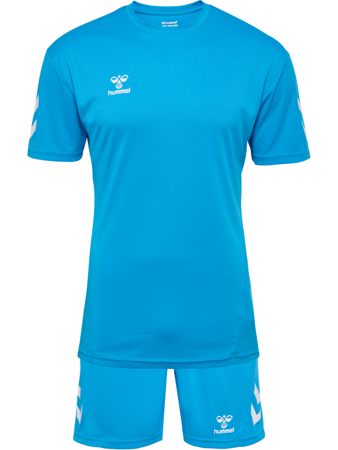 Le hmlLOGO SET se compose d'un short et d'un T-shirt. L'ensemble en polyester présente une coupe régulière avec une taille élastiquée pour le confort et une utilisation facile. L'impression du logo et les chevrons sur le côté ajoutent une touche sportive.