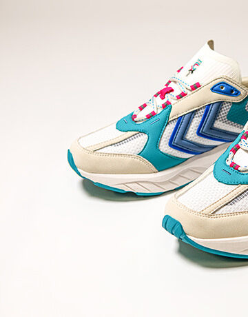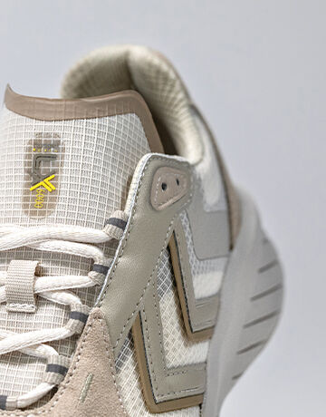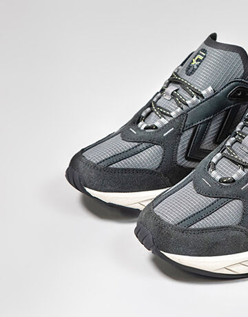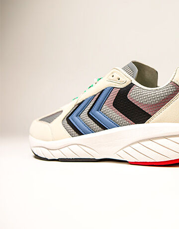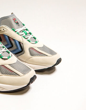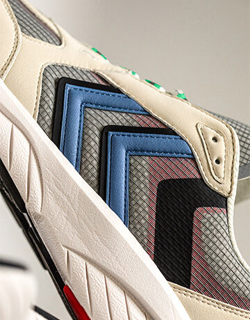 Soft microfiber and premium vegan leather fused with mesh detailing and rib-stop make up the deconstructed upper. Moulded silicone underlays and HI-TEC reflective lacing come together with an overblown REACH outsole to amplify the collection’s athletic look and feel. Three colourways mixes shades of white, black, blue and red as a pensive nod to our revered archive catalogue.